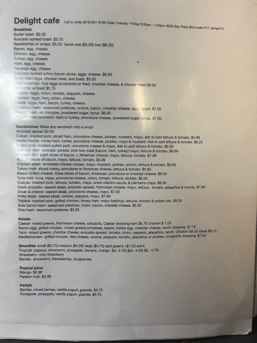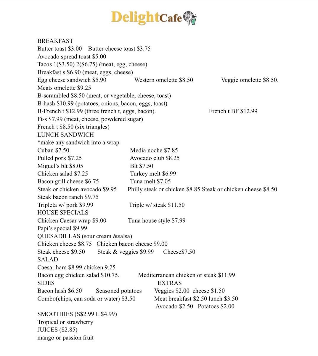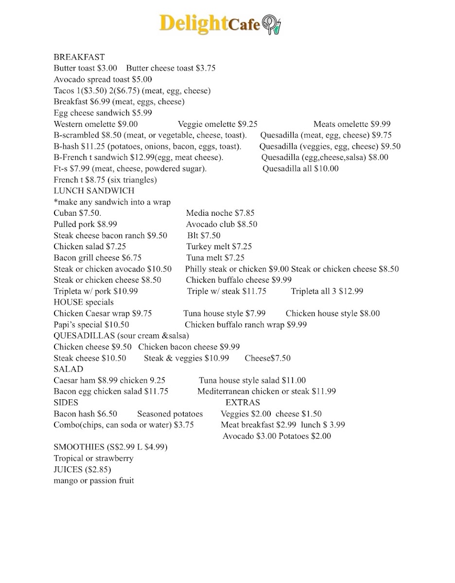 Step into a world of flavor with the Delight Cafe Menu, where every choice feels like a little adventure. From the first sip of a perfectly brewed latte to bites of freshly baked pastries, each item brings its own charm to the table. You’ll find everything from hearty breakfast classics to light, fresh salads that balance comfort and creativity effortlessly. The sandwiches are stacked with care, the wraps are crisp and satisfying, and the daily specials add a touch of surprise that keeps every visit interesting.